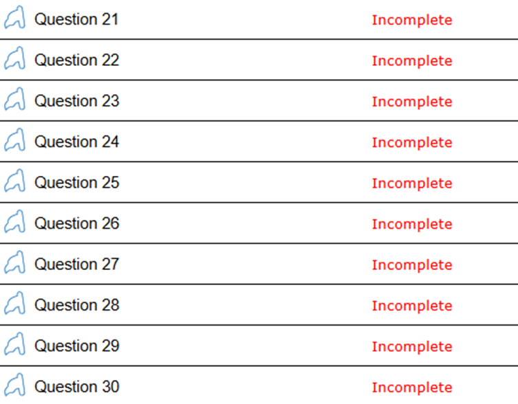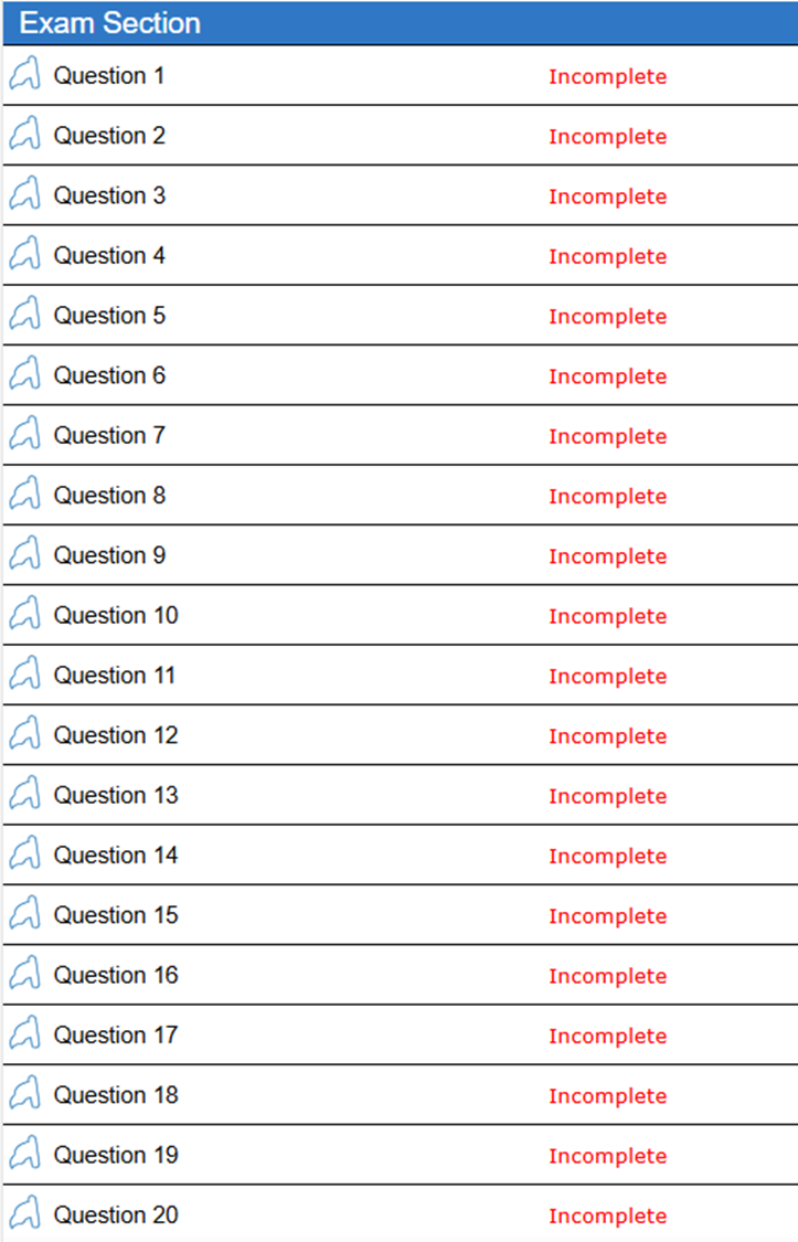 – Review Incomplete: Review all questions with skipped and/or incomplete answers.